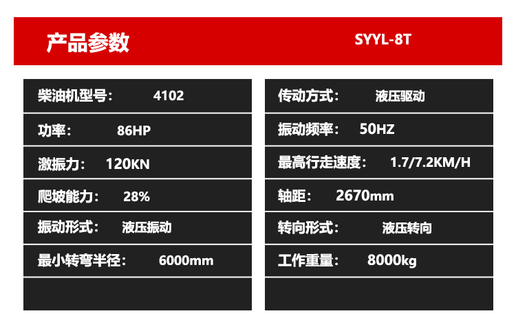1、前置單鋼輪,液壓振動;后置雙膠輪驅(qū)動,防滑,爬坡能力強;