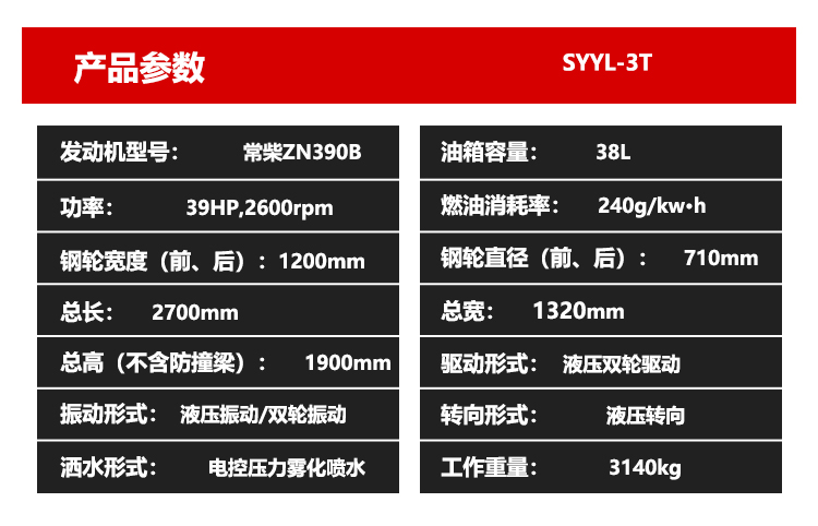 1、前置單鋼輪,液壓振動;后置雙膠輪驅動,防滑,爬坡能力強;